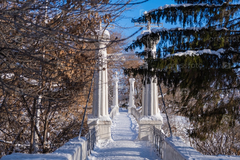 Висячий мост зимой в Уфе