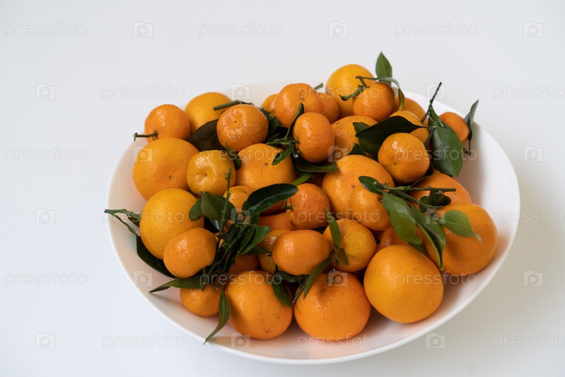 Оранжевые мандарины лежат на тарелке