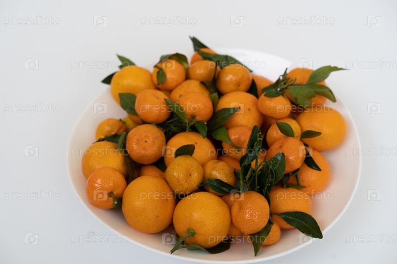 Оранжевые мандарины лежат на тарелке