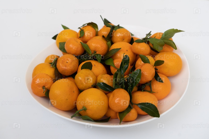 Оранжевые мандарины лежат на тарелке