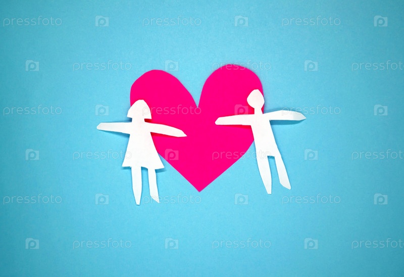Фон с сердцем и бумажными человечками
