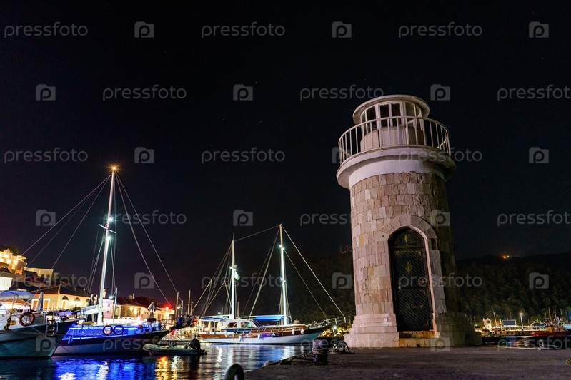 Маяк в порту. ночное фото