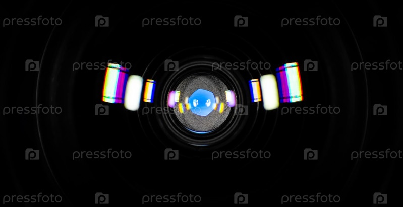 Фотообъектив с шестилепестковой апертурой и цветными отражениями, крупный план