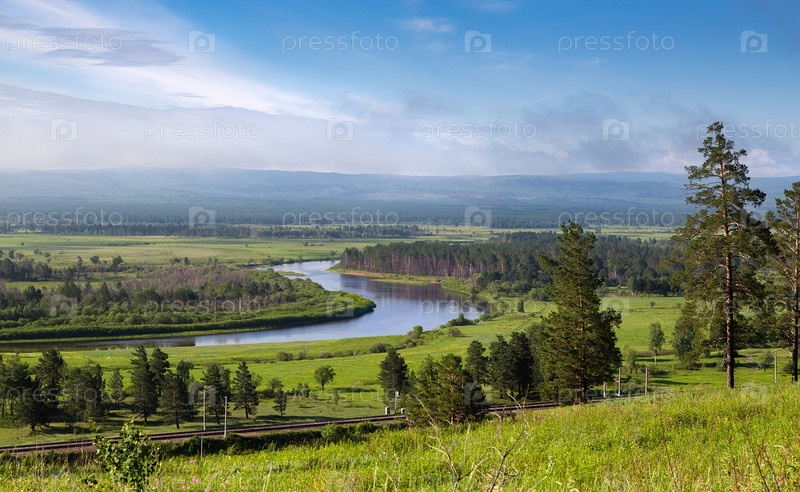 Утренний пейзаж с рекой