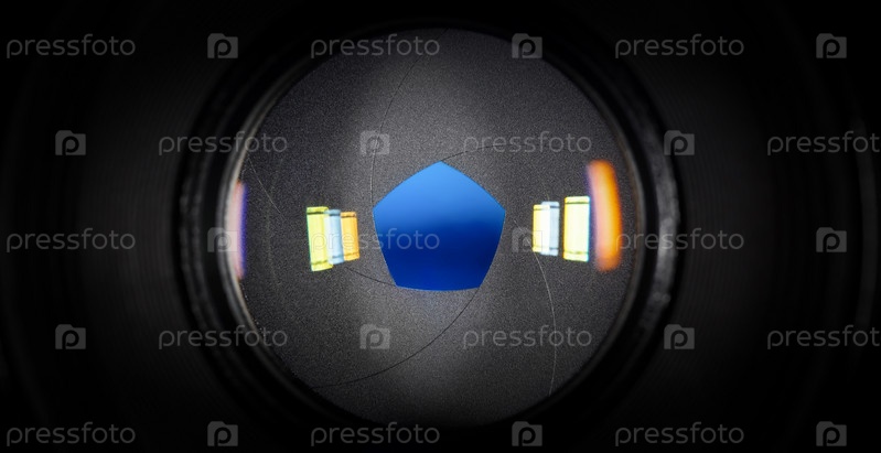 Фотообъектив с пятилепестковой апертурой и цветными отражениями, крупным планом