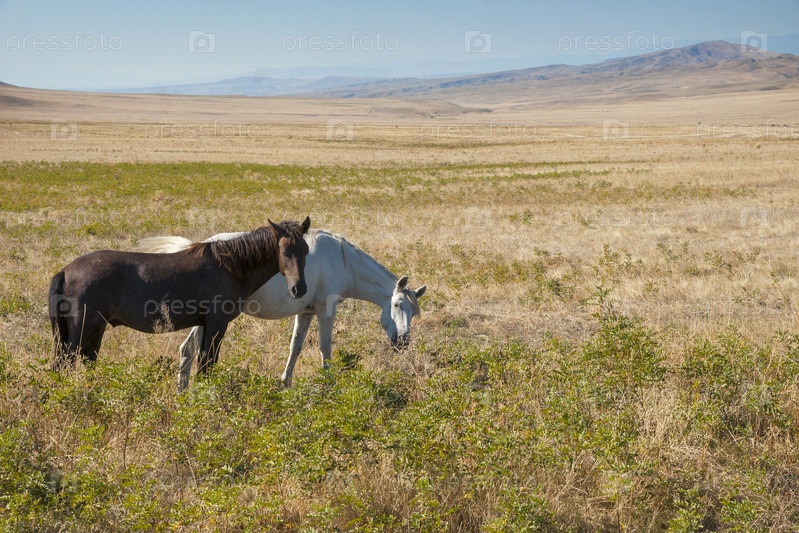 Грузия. Тбилиси. Домашние животные. Лошади на пастбище. Грузия. Тбилиси. Питомцы. Кони в пастбище