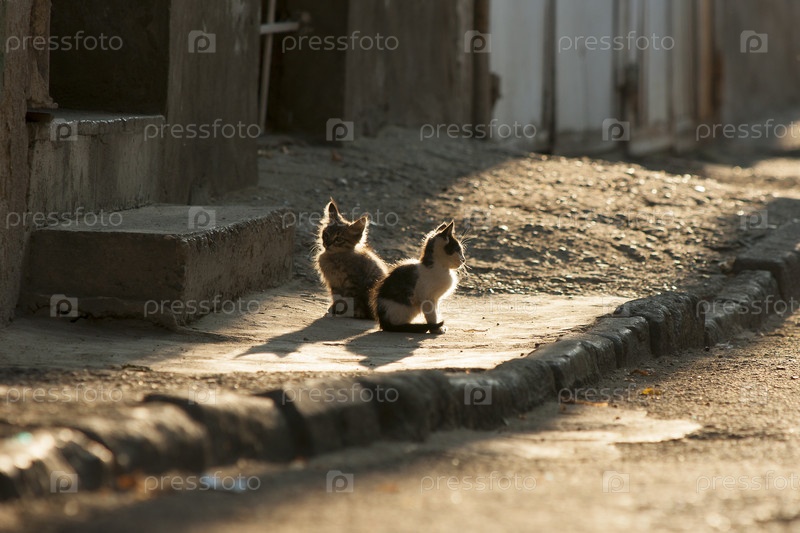 Грузия. Тбилиси. Бездомные кошки во дворе дома. Джорджия. Тбилиси. Бродячие коты во дворе дома