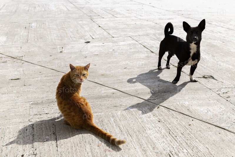 Турция. Стамбул. Городские домашние животные. Уличные кошки и собаки. Турция. Стамбул. Городские питомцы. Уличная кошка и собака