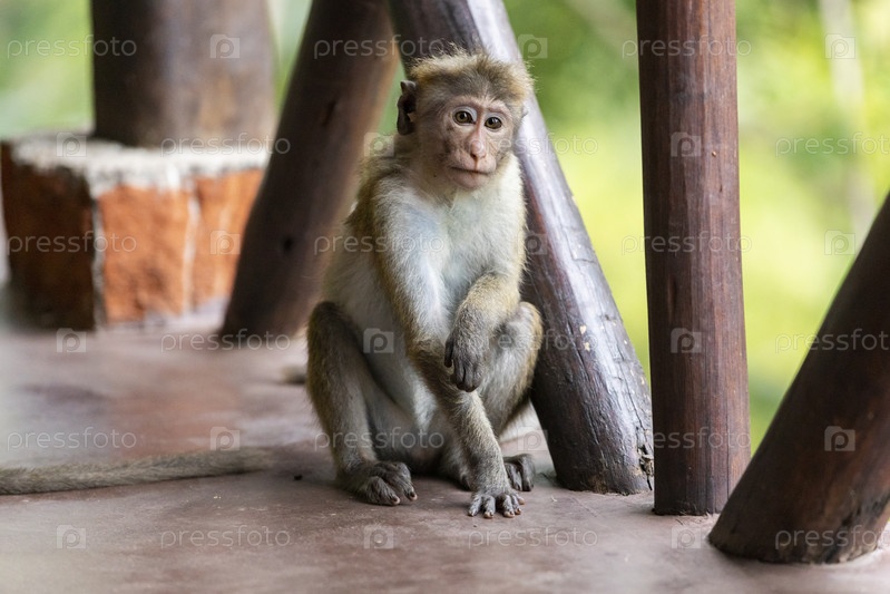 Шри-Ланка. Элла. Цейлонский макак - примат семейства обезьян. Шри-Ланка. Элла. The Ceylon macaque isa primate of the marmoset family