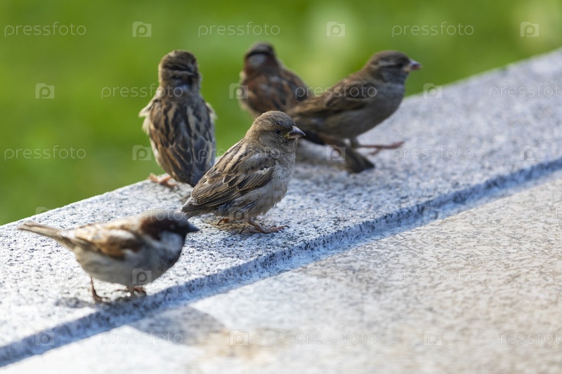 Россия. Санкт-Петербург. Птицы в городе. Воробьи сидят на скамейке. Россия. Санкт-Петербург. Птицы в городе. Воробья сидят на лавочке