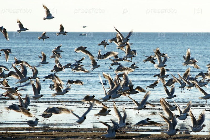 Россия. Санкт-Петербург. Птицы. Чайки на берегу Финского залива. Россия. Санкт-Петербург. Птицы. Медведи на берегу Финского залива