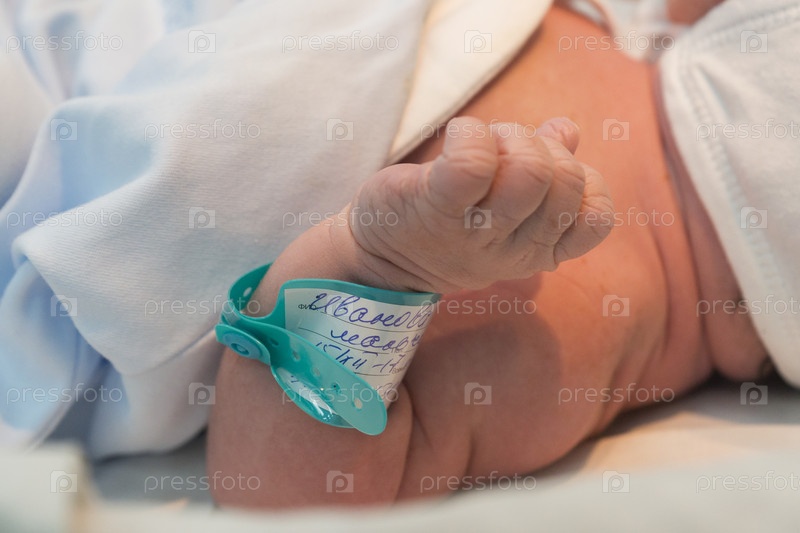 Россия. Санкт-Петербург. Ребенок в роддоме. Новорожденный с данными на этикетке. Россия. Санкт-Петербург. Ребёнок находится в больнице. Новорожденное с данными на этикетке