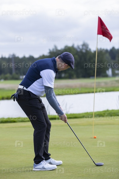 Россия. Санкт-Петербург. Игроки в гольф на спортивной площадке. Гольф-клуб Землянические поля. Россия. Сент-Петербург. Голфисты на спортивном поле. Strawberry Fields Golf Club