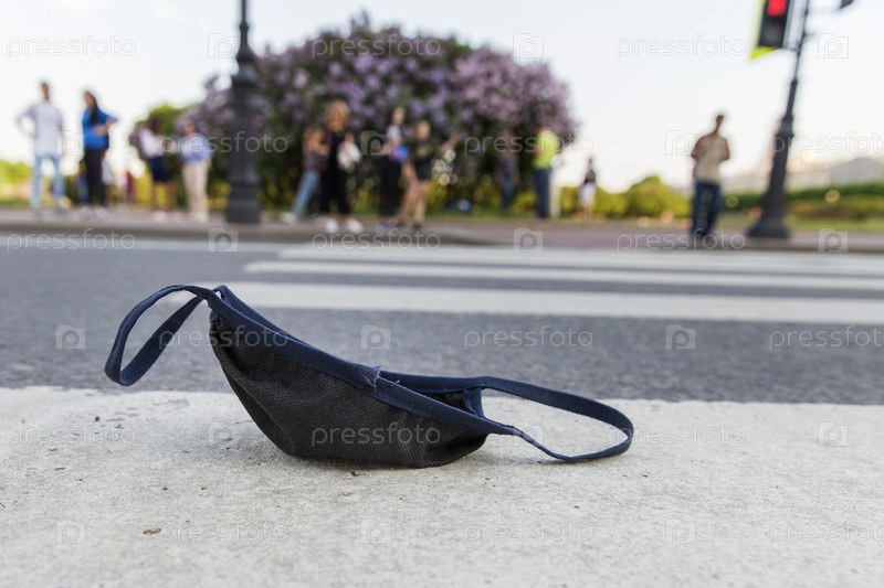 Россия. Санкт-Петербург. Маска на дороге. Индивидуальная медицинская маска лежит на дороге во время пандемии коронавируса. Россия. Санкт-Петербург. Маска на дороге. Индивидуальная медицинская маска лежит на дороге во время пандемии коронавируса