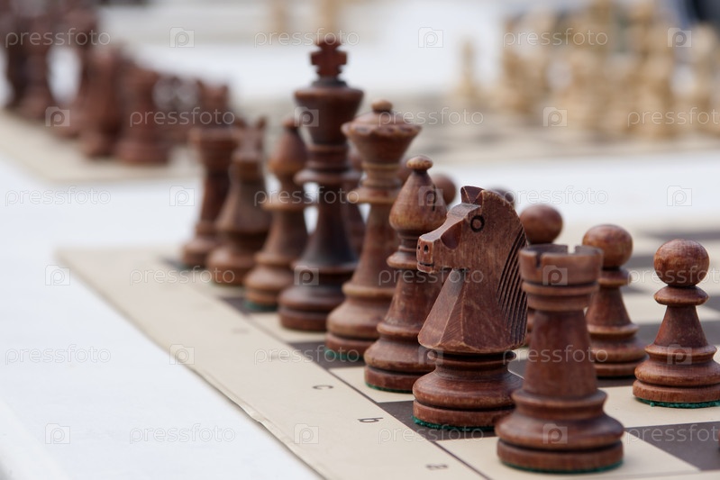 Россия. Санкт-Петербург. Шахматы. Шахматные фигуры, выставленные на доске. Россия. Санкт-Петербург. Шахматы. Шахматические фигуры отображаются на доске