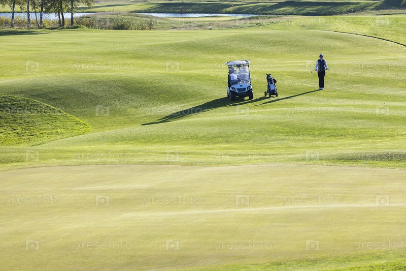 Россия. Санкт-Петербург. Игроки в гольф на спортивной площадке. Гольф-клуб Землянические поля. Россия. Сент-Петербург. Голфисты на спортивном поле. Strawberry Fields Golf Club