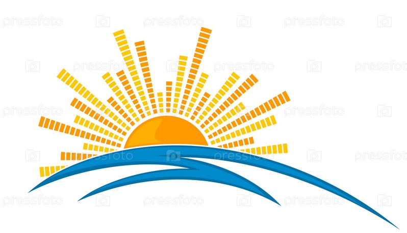 Символ рассвета солнца с голубым морем