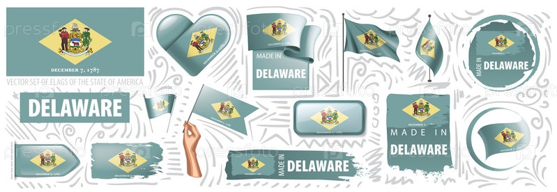Векторный набор флагов американского штата Делавэр в разных исполнениях