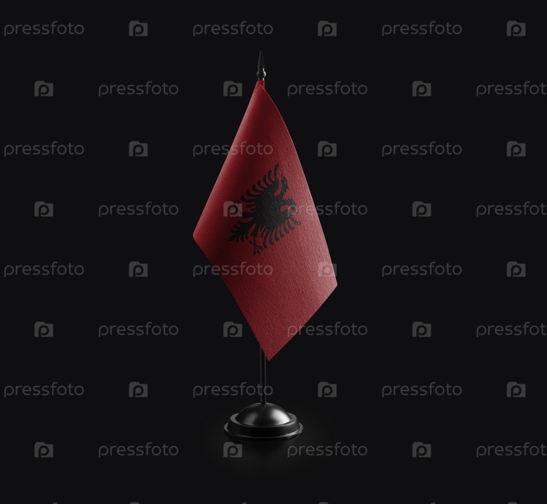 Маленький национальный флаг Албании на черном фоне
