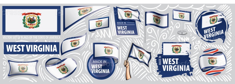 Векторный набор флагов американского штата Западная Вирджиния в разных исполнениях
