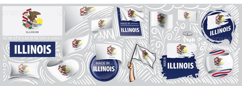 Векторный набор флагов американского штата Иллинойс в разных исполнениях