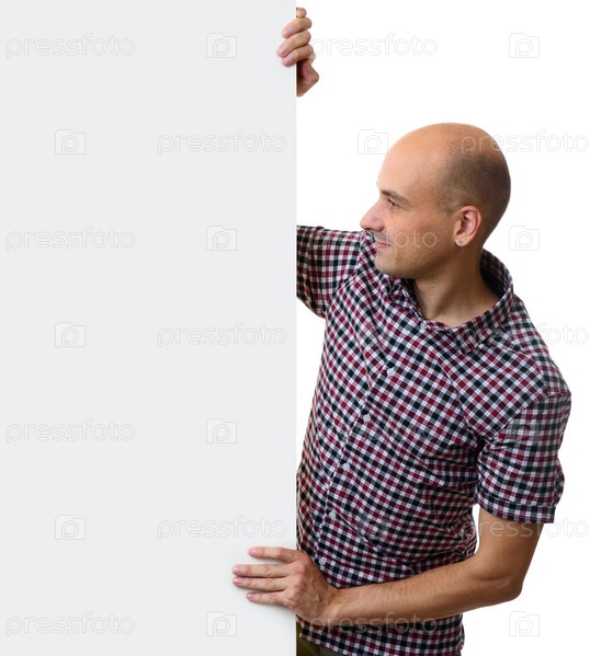 Красивый мужчина ищет пустой плакат