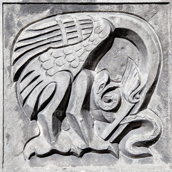 Сказочная птица, поедающая змею, барельеф