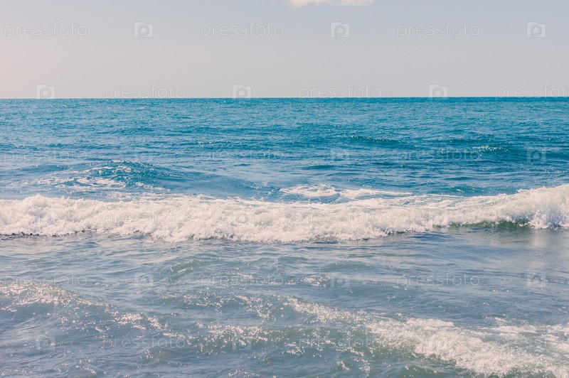 Морской волнистый горизонт, красивый морской пейзаж в солнечный день