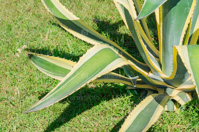 Крупный план американской полосатой агавы, растущей на открытом воздухе