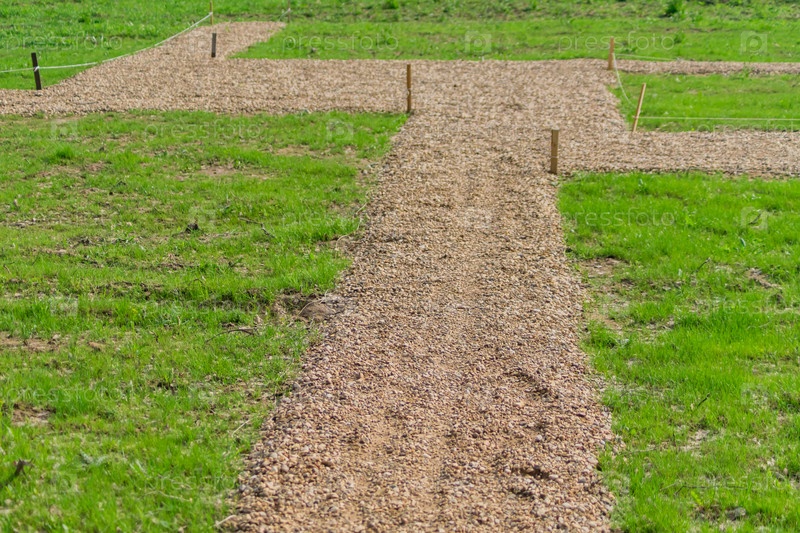 Разметка садовых дорожек на строительной площадке. Строительство загородного дома