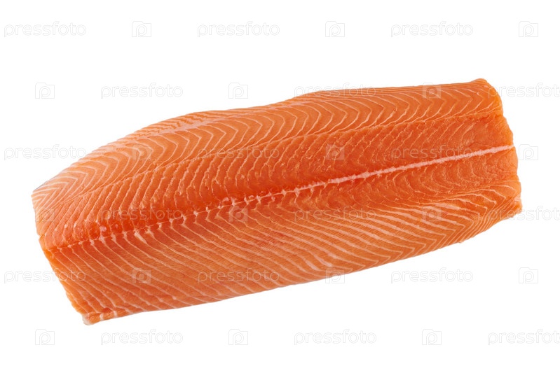Свежее сырое цельное филе лосося, сырая рыба, выделенная на белом фоне