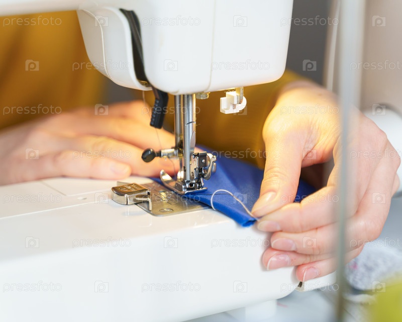 Женщина-швея шьет или сшивает ткань на профессиональной машине