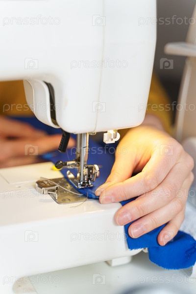 Женщина-швея шьет или сшивает ткань на профессиональной машине