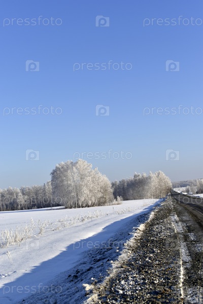 Скоростная дорога в заснеженном поле. Снежная дорога зимой