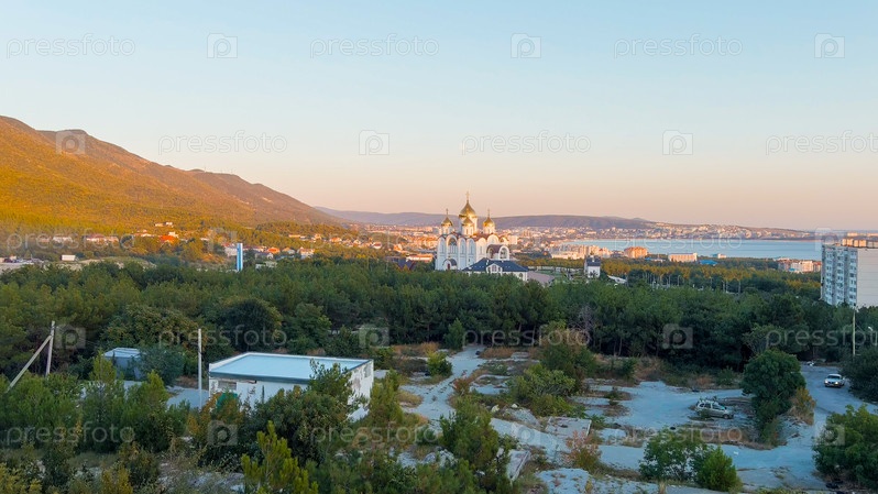 Геленджик, Россия. Собор Андрея Первозванного. Время заката, Вид с воздуха