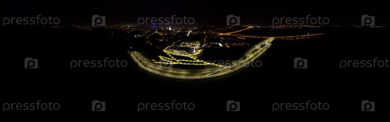 Калуга, Россия. Космическая ракета. Набережная Яченского водохранилища. Панорама 360. Вид с воздуха ночью