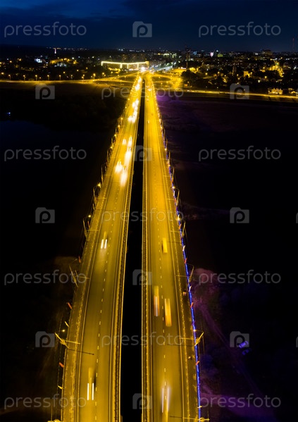 Калуга, Россия. Гагаринская развязка. Гагаринский мост. Ночной город. С высоты птичьего полета
