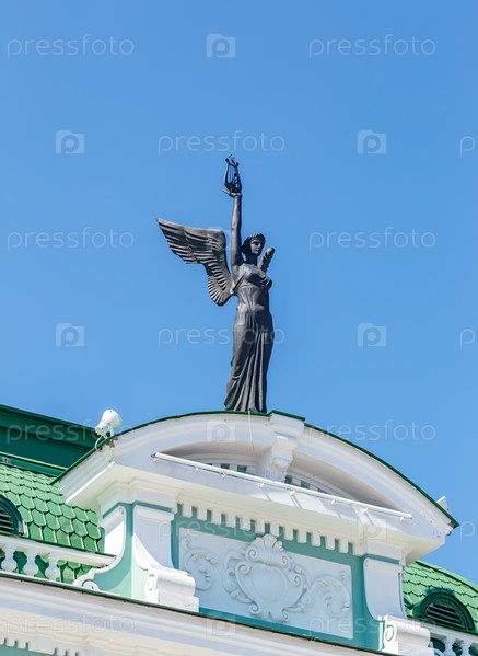 Россия, Омск. Скульптура на здании Омского государственного академического театра драмы
