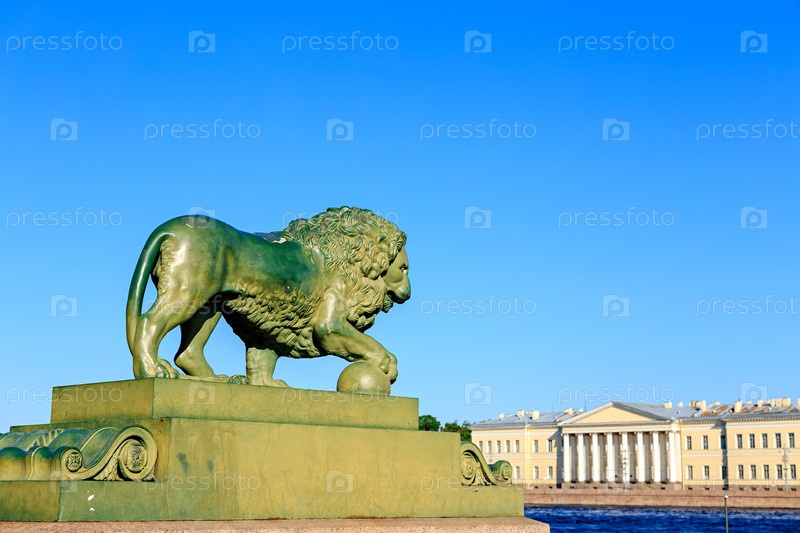 Санкт-Петербург, Россия. Скульптура львов возле Дворцового моста