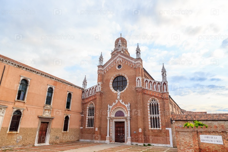 Венеция, Италия. Церковь Мадонны дель Орто (Chiesa della Madonna dell&39;Orto). Католическая церковь. Текст метки - географические названия объектов и мест