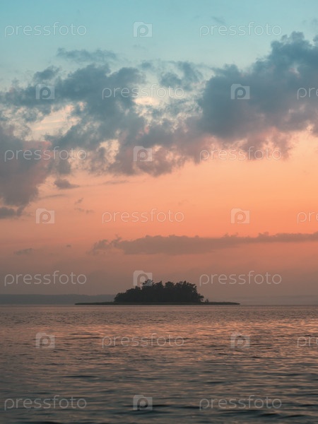 Одинокий остров, облака восхода солнца