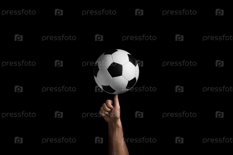 Футбольный мяч вращается на пальце