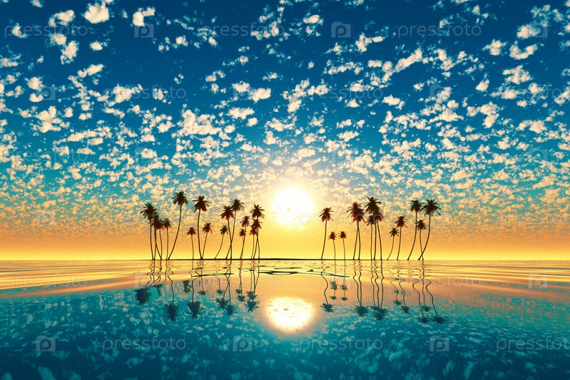 Золотой закат над бирюзовым тропическим островом