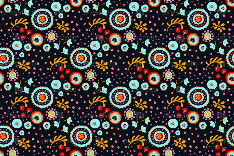 Бесшовный узор с фантазийными цветами, этнический вращающийся повторяющийся дизайн ткани и плитки, натуральные обои, иллюстрация завитка цветочного декора. Пейсли печать рисованной элементы.Украинский узор