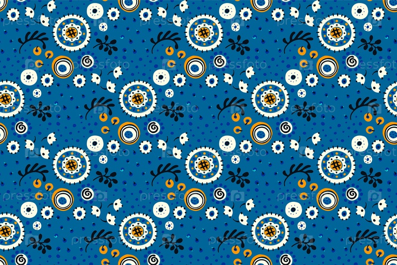 Бесшовный узор с фантазийными цветами, этнический вращающийся повторяющийся дизайн ткани и плитки, натуральные обои, иллюстрация завитка цветочного декора. Пейсли печать рисованной элементы.Украинский узор