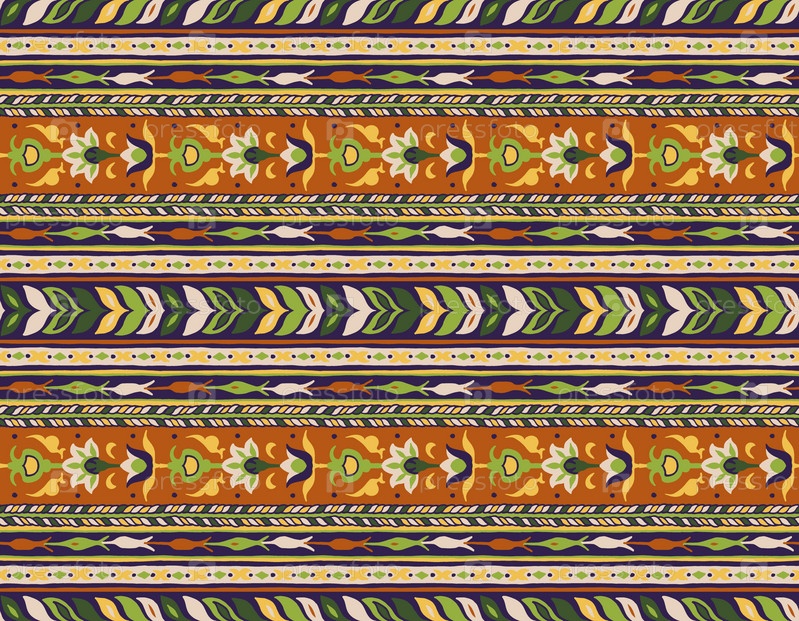 Геометрический фольклорный орнамент икат. Племенная этническая векторная текстура. Бесшовный полосатый узор в стиле ацтеков. Рисунок племенной вышивки. Индийский, скандинавский, цыганский, мексиканский, народный узор