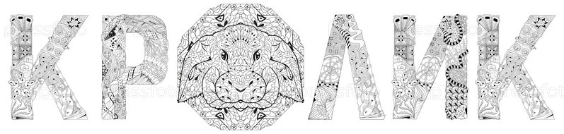 Художественный дизайн ручной росписи. Ручной рисунок слова кролик на русском языке для футболки и других украшений