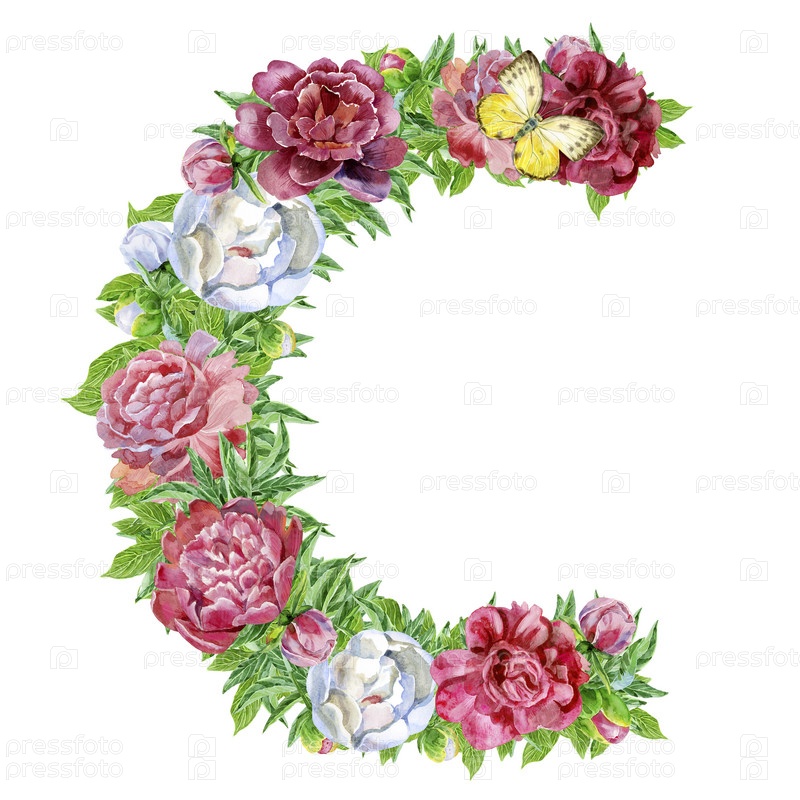 Буква C из акварельных цветов