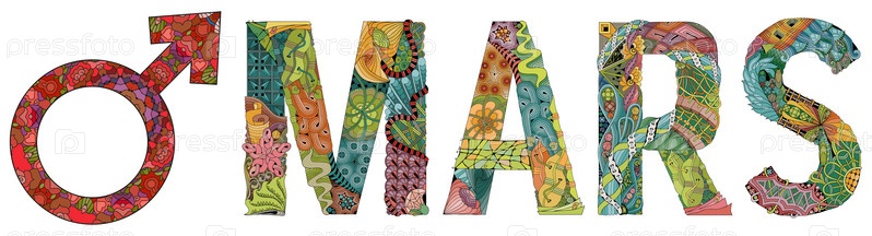 Знак МАРС со словом Марс, концепт-арт астрологии. Дизайн татуировки. Концепция астрологии для оккультного дизайна