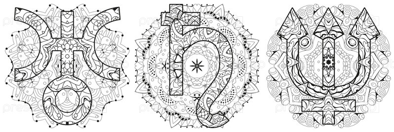 Астрономические знаки НЕПТУНА, САТУРНА и УРАНА с мандалами. Знаки гороскопа, магические символы, иконы